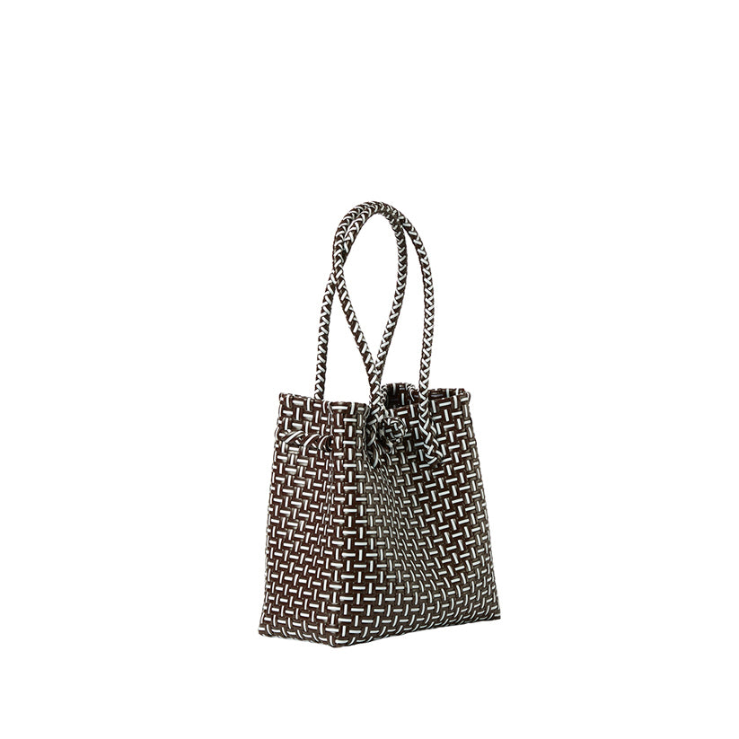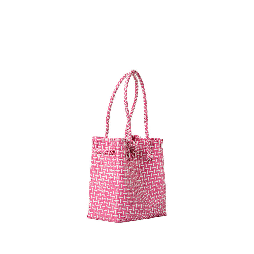 Handwoven from recycled plastic, the Mini Ella is a compact carry-all made for everyday ease. The mini is a great bag for poolside, boating or beach!   Lightweight, structured, and surprisingly spacious, it transitions seamlessly from vacation days to city strolls. Each piece is handmade by skilled artisans using durable, water-resistant materials, making it a sustainable staple designed to last.