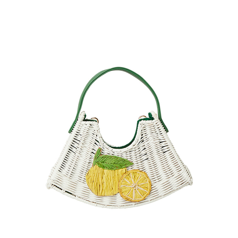 The Tati Crescent Bag brings a playful vibe with its handwoven wicker design that truly turns heads. It features a lambskin leather strap decorated with gold floral accents and a removable crossbody strap.Each bag is one of a kind with a handprinted lining  Perfect for carrying your essentials. Made from wicker, cotton, lambskin, and gold hardware, it’s a charming addition to any outfit.