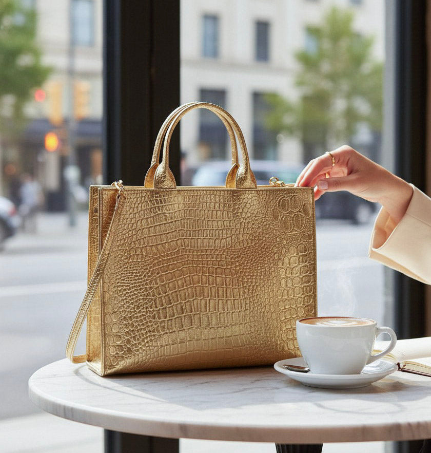 The Adele is a larger version of our classic bestselling Adelaide handbag, featuring the same structured form and understated elegance as the original. Perfect for everyday use, the Adele also includes a detachable leather shoulder strap. Handcrafted using our finest embossed leather and a coordinating suede interior lining.