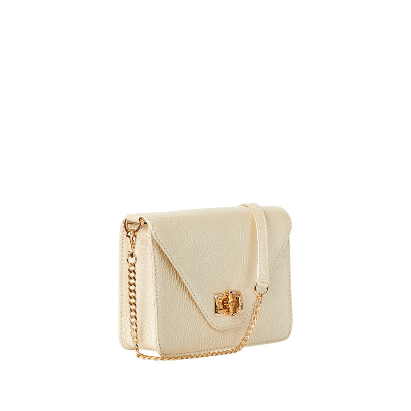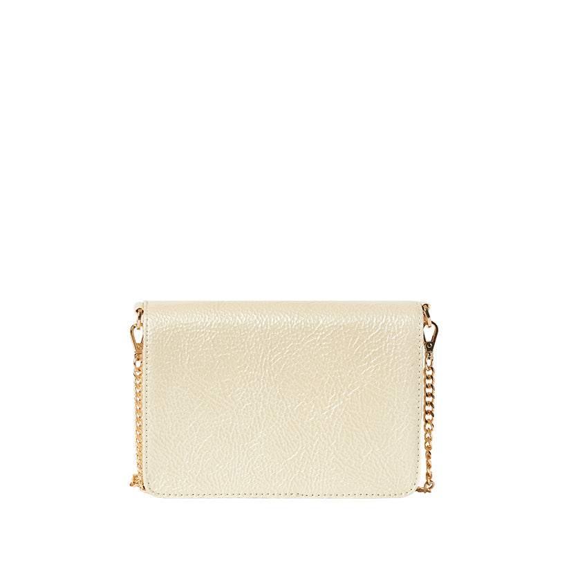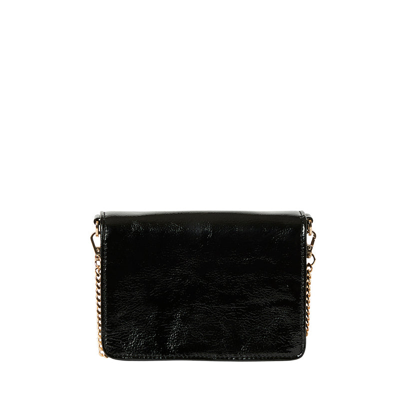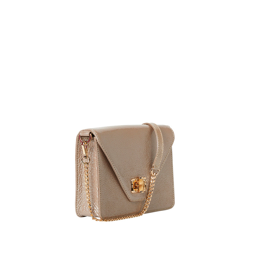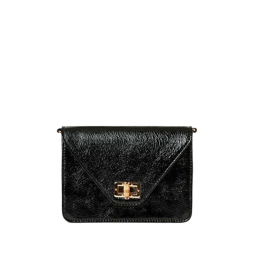 The Stacey Patent embraces understated sophistication with clean, architectural lines and a wonderfully compact silhouette. Crafted from luxuriously crinkled patent lambskin, this shoulder bag transitions effortlessly from day to evening. The removable chain and leather strap offers styling flexibility, while the signature bamboo and metal hardware closure delivers that coveted designer touch. Refined elegance meets everyday practicality in one chic package.