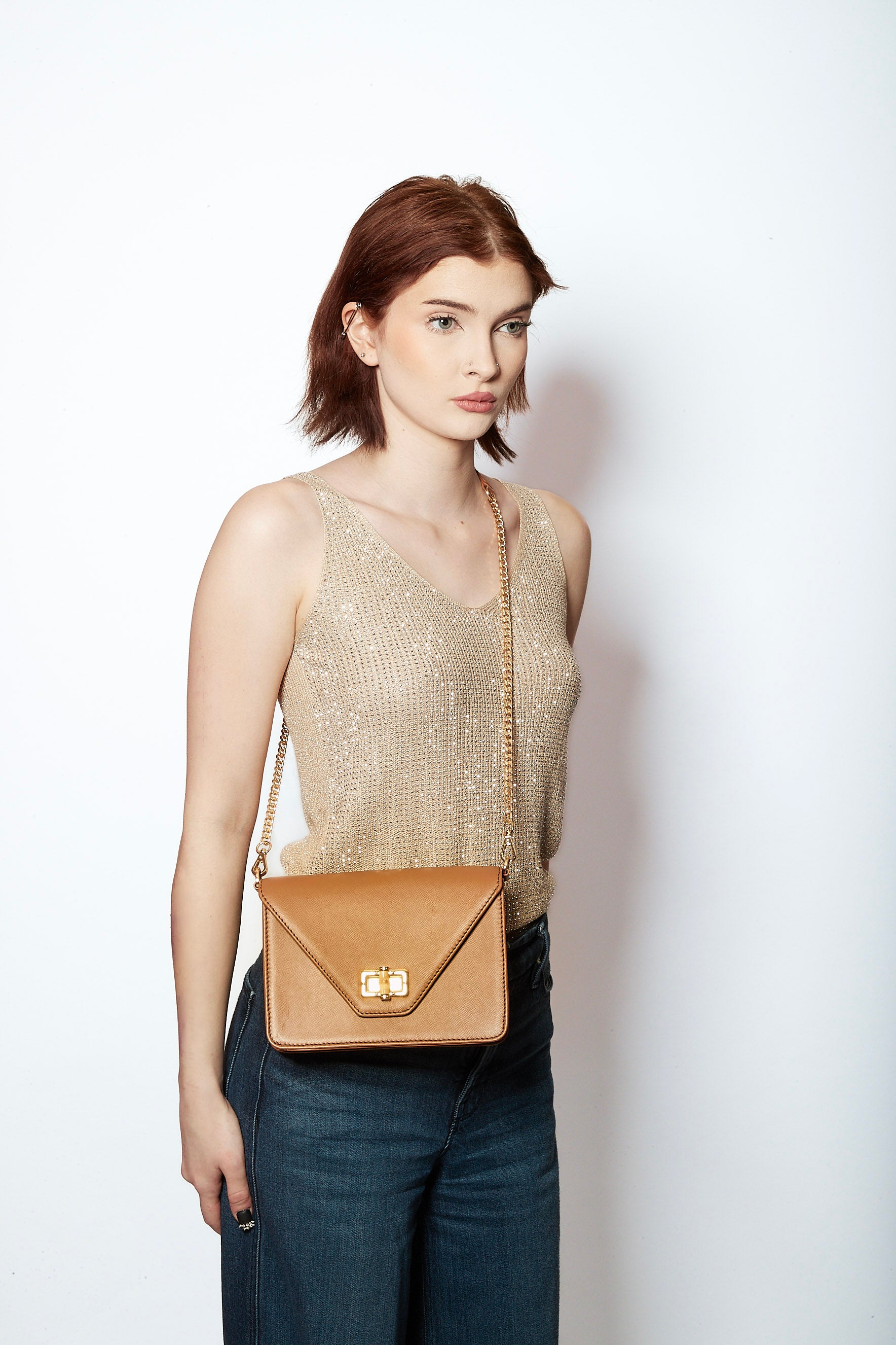 Materials: saffiano leather, suede, metal